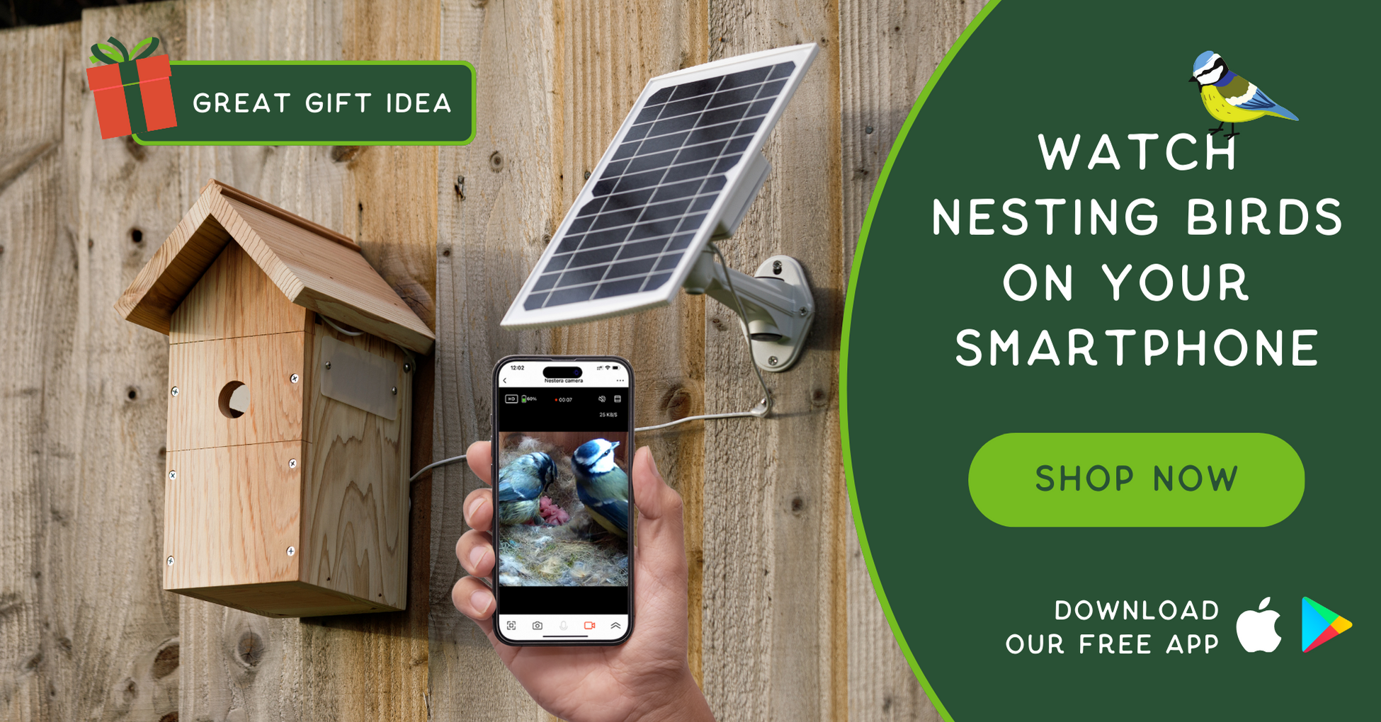 Our easy-to-use WiFi Camera Bird Box offers 24/7 access to the nesting birds in your garden on your smartphone or tablet.