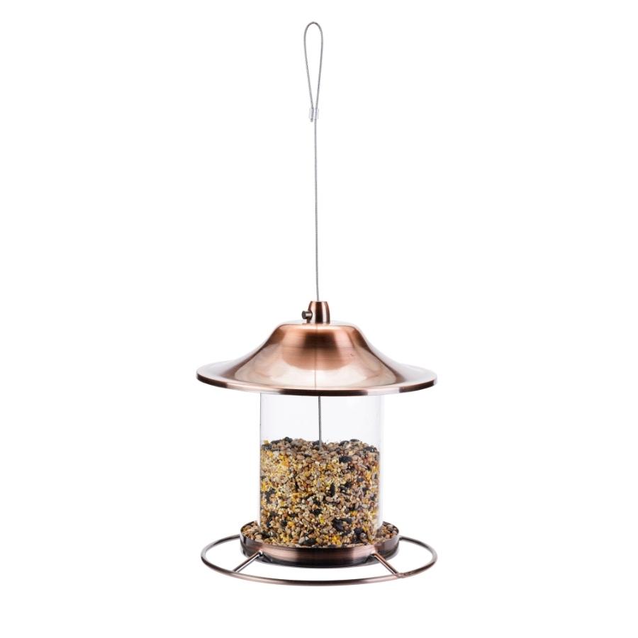 A stylish lantern-style feeder with a warm gold finish. Built to withstand the elements, it offers a sheltered feeding space and keeps seeds cleaner and drier all year round.