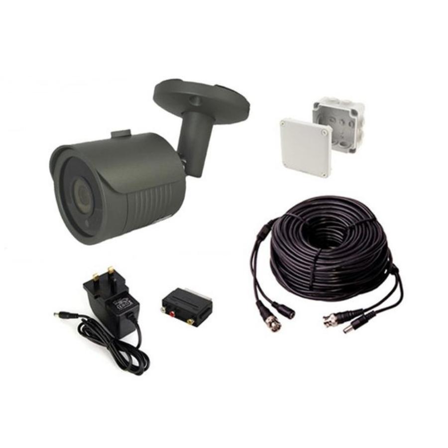 Consisting of a weatherproof cable (Video & 12v DC) connected to the camera at one end, whilst the other end of the cable needs to be routed into your property. The power and video run down the one cable, 12V DC power adaptor (supplied) for use indoors. The remaining video and optional audio connectors can either plug into a spare AV/AUX socket on your TV, video / DVD recorder, or a spare scart socket using the supplied scart adaptor. Switch on the 12v mains adaptor, then select the appropriate AV channel on your TV, sit back and wait for the show to start. Optional PC / MAC connectivity also available.