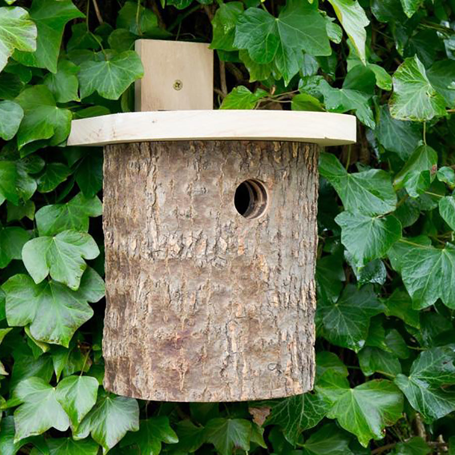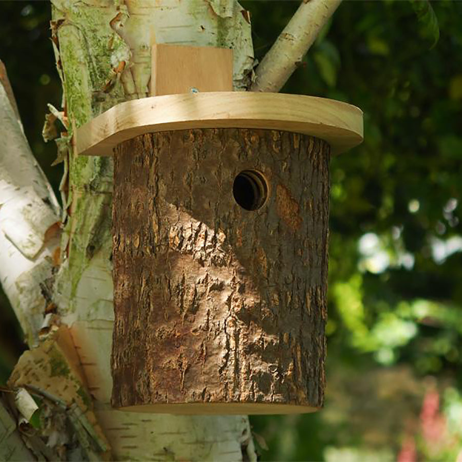 This attractive and totally natural log nest box has been manufactured in such a way as to replicate a tree nesting site. Suitable for garden bird nesting such as bluetits, Coaltits, marshtits and wrens. The thick log nest box creates a good insulation for keeping nesting birds warm and dry.