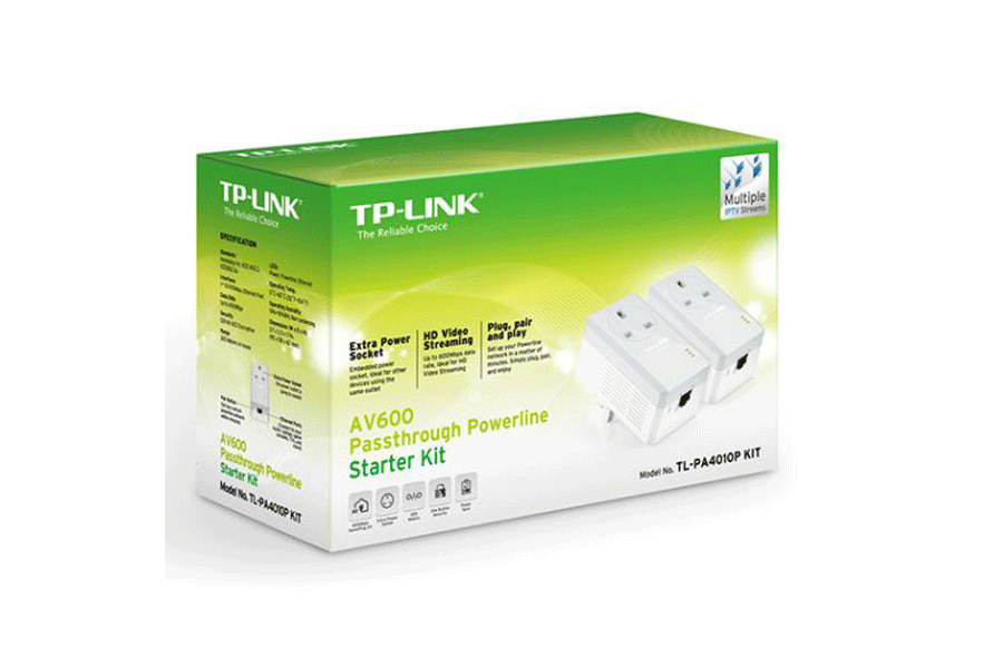 The TL-PA4010P Powerline adaptor kit turns your existing mains power line into a high-speed network without need for new wires or drilling. No configuration is required, just plug your adapter into your power socket and you can establish a networking infrastructure.