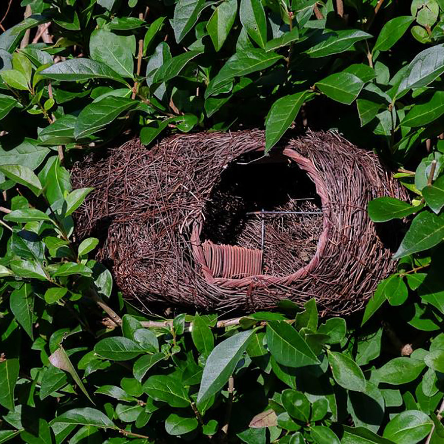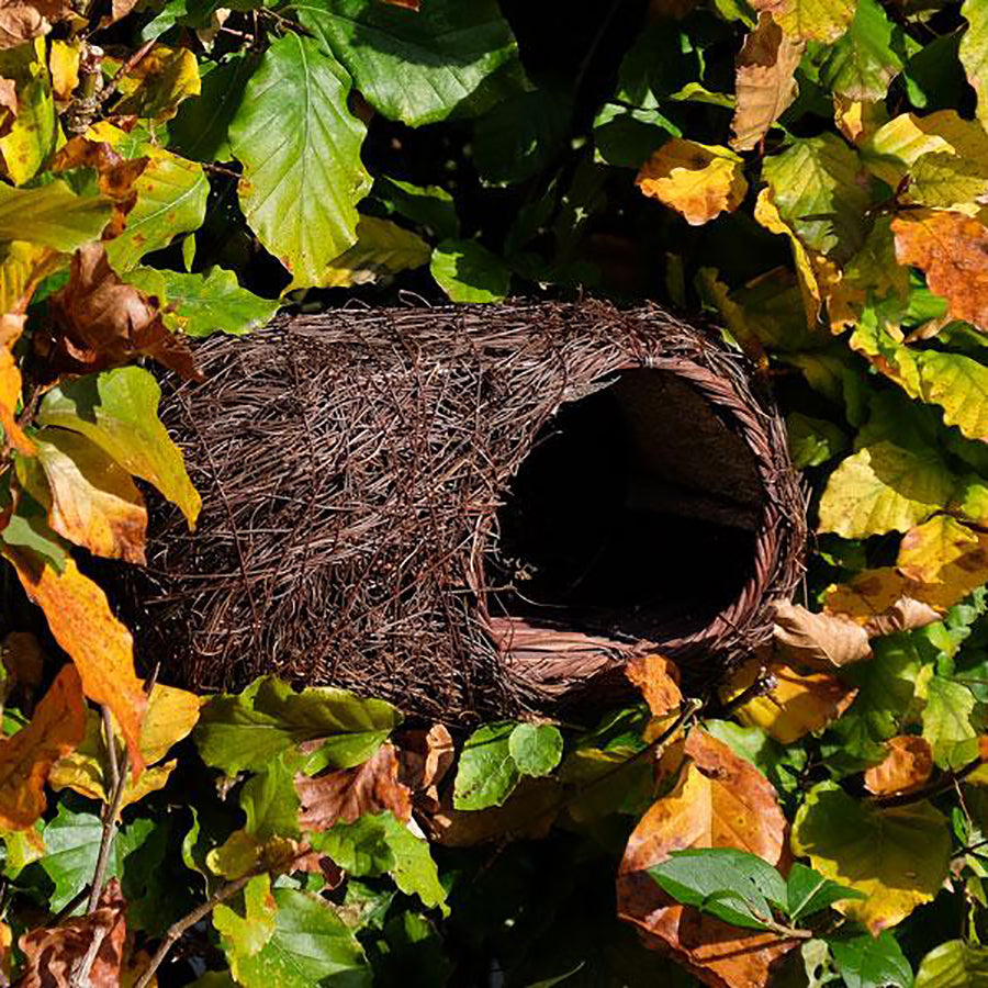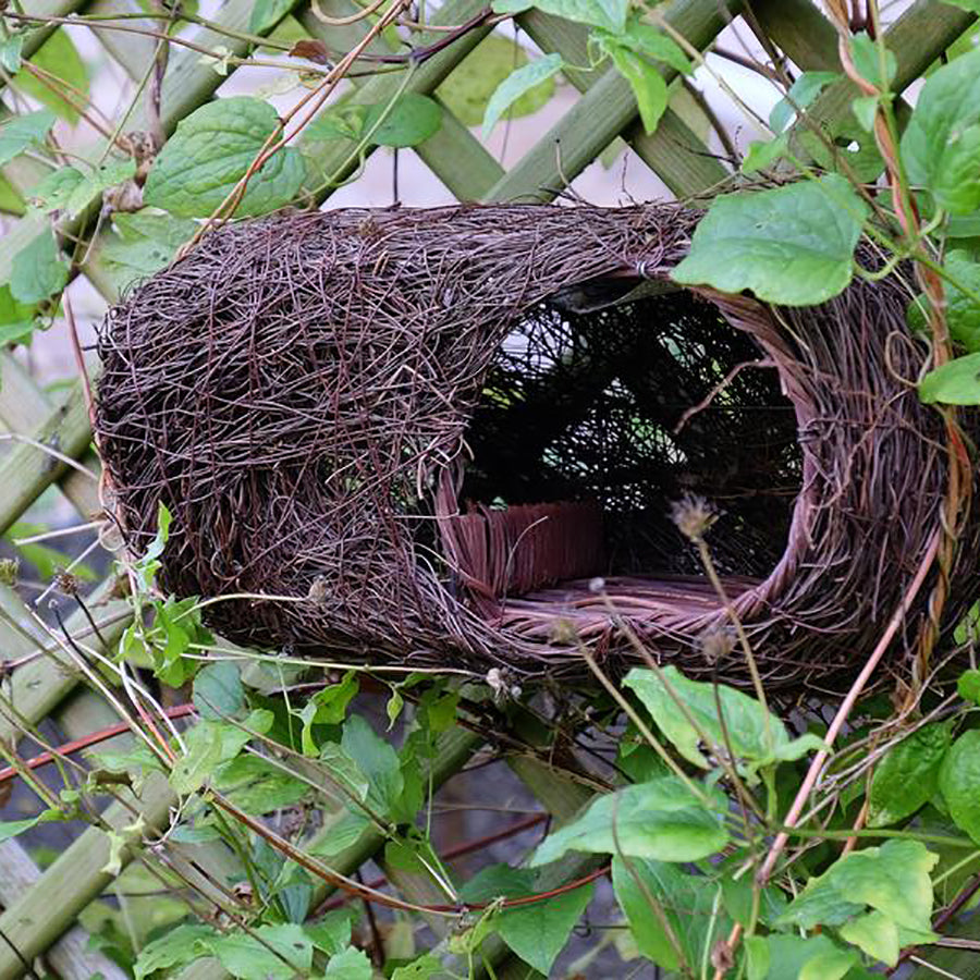 This robin nest pocket has been designed specifically with the knowledge that robins prefer an open nesting box with easy access, but robins also like a concealed nesting site. This robin nester really fits the bill, having been manufactured from brushwood with a rattan landing platform and nest divider, it makes for a very purposeful and natural nest for robins that can be fixed in an outbuilding such as a shed or porch, or safely stowed into low level foliage where robins love to nest and hideaway.