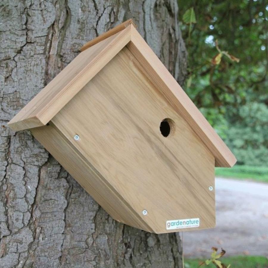 This unique Gardenature design side view nest box offers market leading quality and value for money. The Side view nesting box is hand made in our own workshops from high grade Western Red Cedar (sourced from well managed forests) and follows guidelines suggested by the RSPB and British Trust for Ornithology. The bird box has a 32 mm entrance hole making it suitable for the widest range of garden birds including: