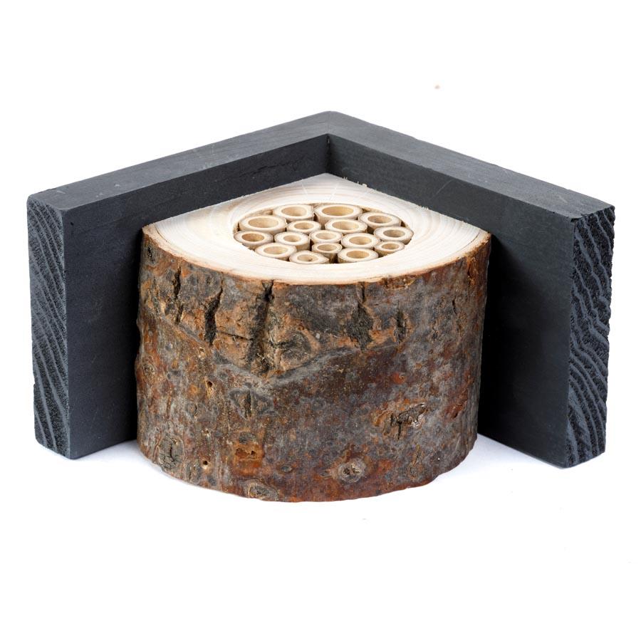 The hole sizes are designed to attract non-swarming bees like the Red Mason Bee, Leafcutter Bee and other solitary bees. These friendly bees are productive and safe around children and pets. The bees are naturally attracted to holes in wood, and this solitary beehive provides a habitat that has become harder to find in modern gardens.